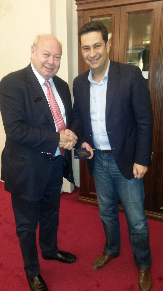 O κ. Παρίσης αποδέχθηκε την πρόσκληση και προσέφερε συμβολικά δώρα στον αγαπητό του συνάδελφο.