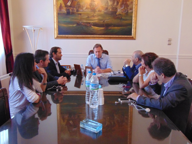 Τον πρόεδρο του Πανελληνίου Ιατρικού Συλλόγου κ. Μιχαήλ Βλασταράκο, τον αντιπρόεδρο κ. Κωνσταντίνο Κουτσόπουλο, την πρόεδρο του Ιατρικού Συλλόγου Κεφαλονιάς κ. Σοφία Ζαφειράτου, τα μέλη του Δ.Σ. του Συλλόγου κ. Μαρία Κομποθέκρα και κ. Φώτη Αυγουστάτο και τον διοικητή του Γενικού Νοσοκομείου Κεφαλονιάς κ. Παναγιώτη Ζαφειρόπουλο, υποδέχθηκε στο Δημαρχιακό Μέγαρο ο αντιδήμαρχος Υγείας κ. Ευάγγελος Κεκάτος.