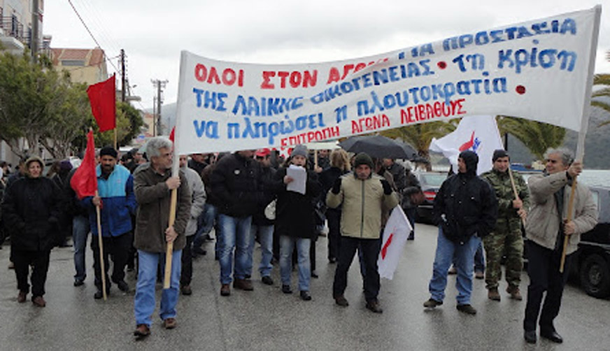 «Κάτω η νέα συμφωνία της βαρβαρότητας και της ντροπής! Όλοι και όλες στη συγκέντρωση του ΠΑΜΕ στο Αργοστόλι Τετάρτη 15 Ιούλη, 8.30’ μ.μ. έξω από το Εργατικό Κέντρο!».