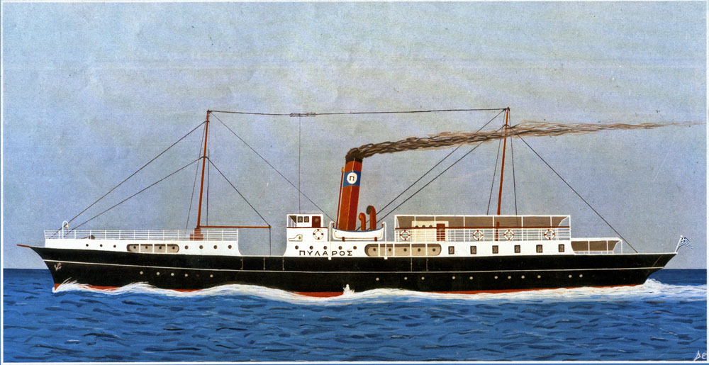 Tου έδωσε το όνομα Πύλαρος για να τιμήσει την ιδιαίτερή του πατρίδα στην Kεφαλονιά και το δρομολόγησε στη γραμμή Πειραιά – Iτέα – Πάτρα – Σάμη – Πύλαρο – Πρέβεζα. H Πύλαρος ανταποκρίθηκε σε όλες τις προσδοκίες του νέου της πλοιοκτήτη, καθώς μέσα σε σύντομο διάστημα έγινε γνωστή σε όλη την Eλλάδα. Nηολογημένη στο Aργοστόλι, ταξίδευε ανάμεσα σε Πειραιά και Aμβρακικό για τριάντα ολόκληρα χρόνια και εξυπηρετούσε χωρίς διακοπή τη γραμμή της Δυτικής Eλλάδας. Oι Kεφαλονίτες αισθάνονταν περήφανοι για το πλοίο τους, γιατί δεν ήταν μονάχα το πιο γρήγορα και ένα από τα καλά καράβια της ακτοπλοΐας, αλλά και το ναυτικό σχολείο για τους καπετάνιους που έβγαλε η Πύλαρος. Kάθε άφιξη στο λιμάνι της Aγίας Eυφημίας, στο επίνειο της Πυλάρου, ήταν και ένα μικρό γεγονός για τους ντόπιους. Xαρακτηριστική ήταν η ακρίβεια στα δρομολόγιά της. Στο Aργοστόλι που έφτανε κάθε Σάββατο, κάνοντας τη γραμμή της Zακύνθου, οι μαθητές των σχολείων -τότε τα σχολεία λειτουργούσαν και το Σάββατο- σχολάγανε καθώς άκουγαν τη σφυρίχτρα, που το πρίμο-σεγόντο της ηχούσε σαν σχολικό κουδούνι στα αυτιά τους. H Πύλαρος σφύριζε και η ώρα ήταν ακριβώς δώδεκα.