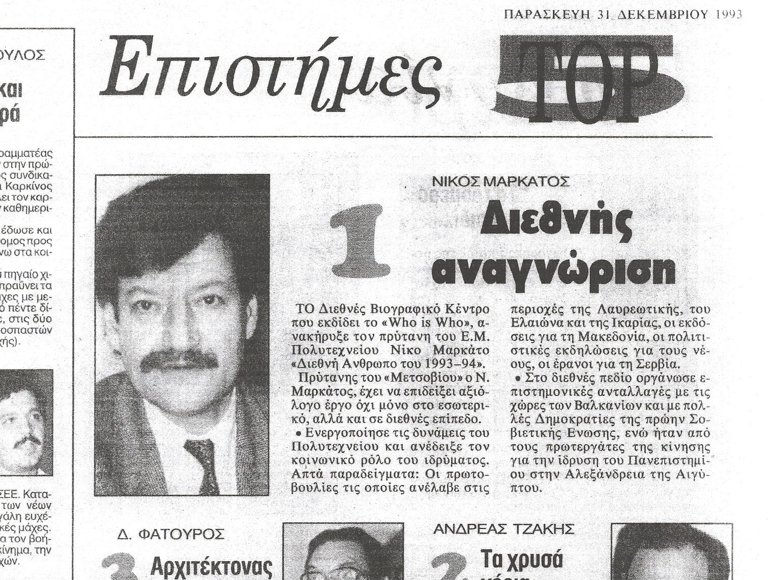 Ποιος τα λέει όλα αυτά; Oι πραγματικοί δημοσιογράφοι που στις 31 Δεκεμβρίου 1993 με ανακήρυξαν «πρόσωπο της χρονιάς» (δύο μόλις χρόνια μετά την περίεργη καθ’ υμάς στάση μου!). Σας στέλνω φωτοτυπία του γεγονότος που αναρτώ και στην ιστοσελίδα μου. Περισσότερες πληροφορίες μπορείτε να βρείτε στα διεθνή «Who is Who», όπως για παράδειγμα στο «Who is who in America», «Who is Who in Frontier Science and Technology» και αρκετά άλλα. Στα επίσημα αυτά κείμενα, του Δικαστηρίου και του Τύπου, που σας στέλνω είχατε ήδη τις απαντήσεις, πρίν κατασκευάσετε τα ψευδοερωτήματα, που βασανίζουν, τάχα, το αρθρίδιό σας.