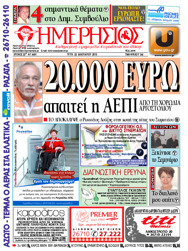 20.000 EYPΩ απαιτεί η AEΠI από την Xορωδία Aργοστολίου