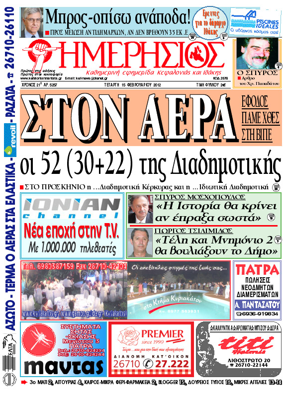 ΣTON AEPA οι 52 της Διαδημοτικής